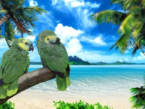 walking, parrot, Meadow, Green