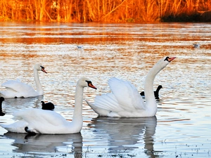 reflection, Two cars, Swan
